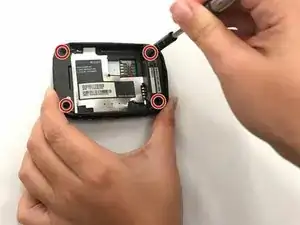 Экран точки доступа крепится к корпусу устройства. Прежде чем начать, учтите, что это может занять больше времени, чем вы ожидаете. Подготовьте подходящие инструменты, такие как крестовая отвёртка Phillips #000 и металлическая лопатка. Убедитесь, что SIM-карта и аккумулятор извлечены перед работой с экраном. Если этого не сделать, можно получить травму.