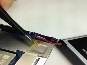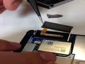 С помощью пинцета снимите жёлтую ленту, закрывающую провода аккумулятора.