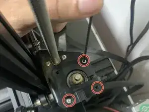 Используйте шестигранный ключ 2 мм, чтобы удалить три оставшихся винта с потайной головкой M3x10, следя за тем, чтобы двигатель не упал.