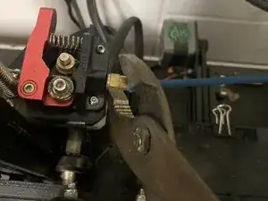 Используйте ключ гаечный 8 мм или пассатижи, чтобы открутить трубку из ПТФЭ от механизма экструдера.