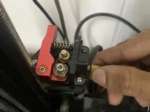 Подсоедините заново трубку из ПТФЭ к экструдеру и вставьте новый пруток.