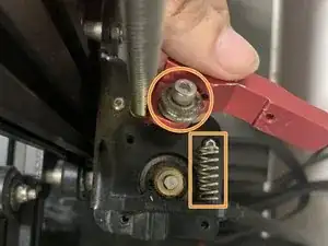 Снимите рычаг экструдера и пружину.