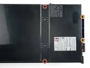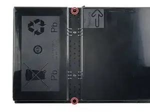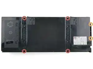 Используйте отвёртку Triangle 3, чтобы удалить шесть винтов, фиксирующих верхнюю крышку сборки аккумуляторов: