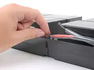 Используйте вырез в разъёме аккумулятора, чтобы потянуть его в сторону правого края корпуса и отключить.