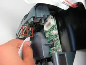 Аккуратно ухватитесь и отключите два белых шлейфа от корпуса принтера.