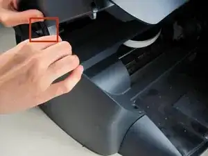 Надавите на две пластиковые петли, чтобы снять верхнюю часть принтера.