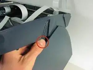 Отцепите энкодерную ленту от её маленьких серебряных крючков и удалите её из принтера.