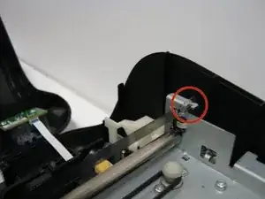 В этом руководстве будет заменена энкодерная лента, которую принтер использует для считывания своей скорости и положения. Она проходит через отверстие каретки и прикреплена к обоим концам рамки внутри принтера. Без этой ленты каретка будет ударяться о бок принтера при включении.