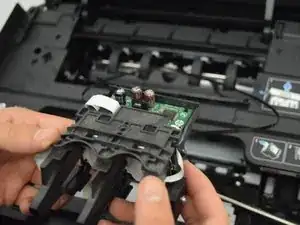 Снимите головку печати с металлической направляющей, просто сдвинув ее в сторону.