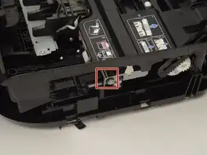 Снимите пружину с боку направляющей головки печати с помощью металлической лопатки.
