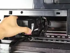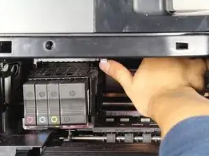 Включите принтер. Это переместит головку печати влево, чтобы вы могли к ней получить доступ.