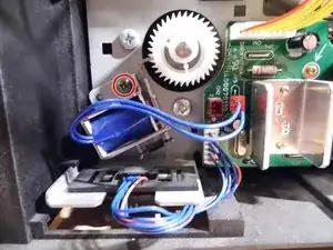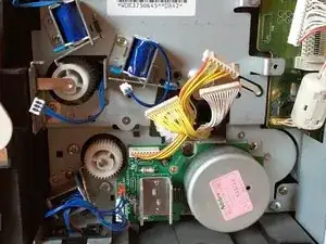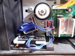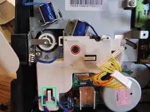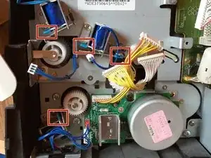 Отсоедините штекер, который соединяет защёлку подачи с платой.
