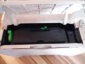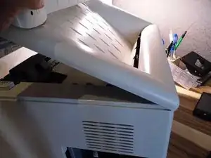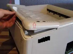 Снимите верхнюю крышку с принтера.