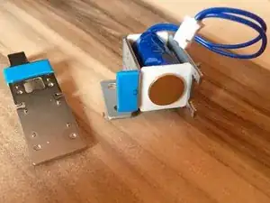 После очистки и замены губчатой резины металлическая вилка может быть снова присоединена к защёлке втягивания. Для этого выполните шаг 14 в обратном порядке.