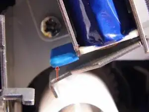 Перед установкой также очистите место, где губчатая резина на кронштейне контактировала с маленьким металлическим язычком в принтере, чтобы удалить следы клея.