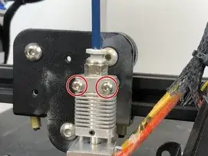 Снимите два больших винта с радиатора хотэнда с помощью шестигранного ключа 2 мм.
