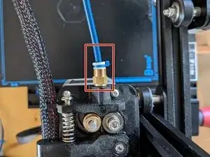 Вы также можете сделать это с большим фитингом на хотэнде, если хотите повторно использовать трубку, но я бы этого не рекомендовал, так как большинство хотэндов поставляются с новой трубкой, а старая трубка, скорее всего, деградировала из-за нагревательных циклов.