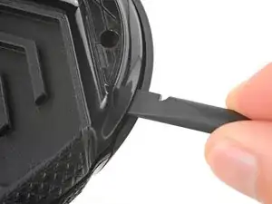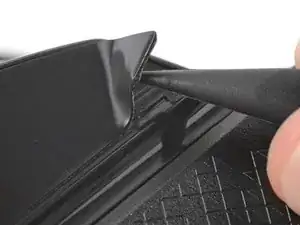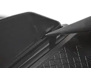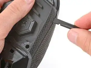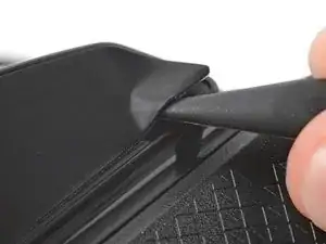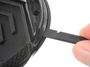 Вставьте плоский конец лопатки между текстурированной кромкой верхней и нижней панелей корпуса, ближе к задней части мыши.