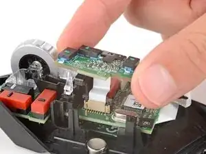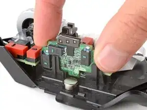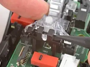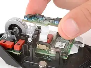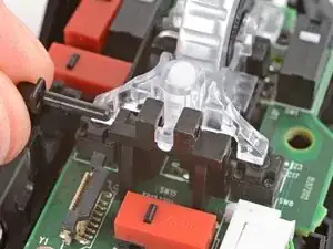 Снимите пластиковую опору колёсика прокрутки с центра платы.