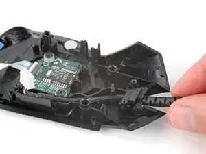Отщёлкивание этой части мыши сложное и может потребовать нескольких попыток. Будьте терпеливы и не применяйте слишком сильное усилие, иначе можете сломать одну из защёлок.