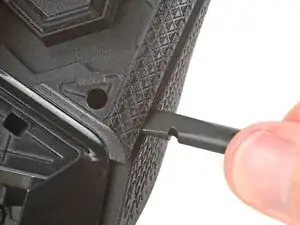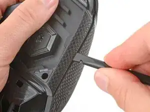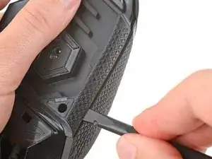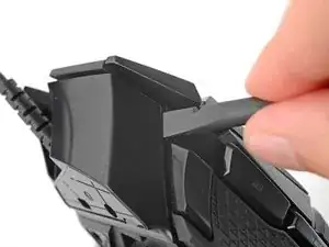 Вставьте плоский конец лопатки между верхней и нижней панелями корпуса, рядом с кнопками G8 и переключения DPI (⊕) в передней части мыши.