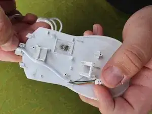 Переверните мышь и отсоедините среднюю часть корпуса.