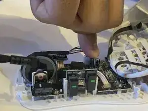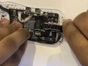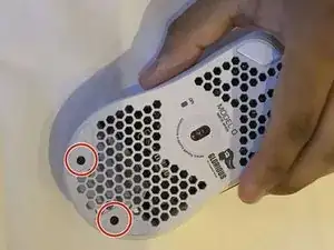 Используя крестовую отвёртку №0, выверните два винта мыши.