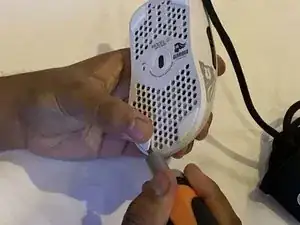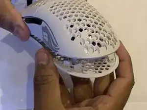 Используя лопатку, снимите две большие накладки-скейты в нижней части мыши.