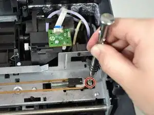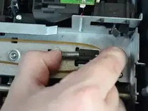 Пинцетом сожмите верхнюю часть пружины, расположенной справа от печатающей головки.