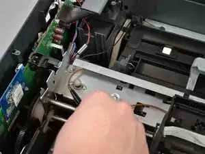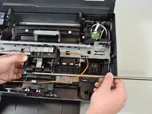 Выньте металлический стержень полностью из принтера, подняв его вертикально, и выдвиньте стержень из каретки, сдвинув левый конец вправо.