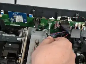 Продолжайте таким образом, чтобы снять все три белых кабеля с печатающей головки.