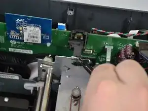 Поднимите печатающую головку с принтера, чтобы открыть последний белый кабель.