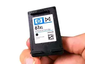 Держите картридж с обеих сторон, наклейка должна быть вверх.