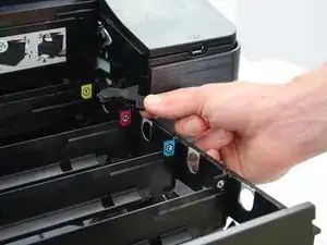 Используйте ручки, встроенные в картриджи с тонером, чтобы вынуть их, потянув прямо вверх.
