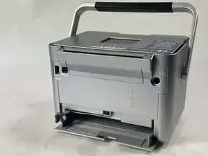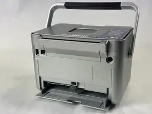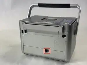 Поверните принтер так, чтобы его задняя сторона была к Вам, и переместите ручку на верхнюю или переднюю часть принтера.