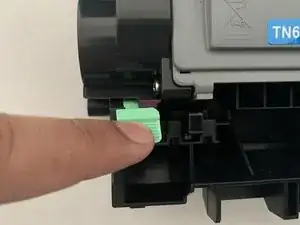 Нажмите на фиксатор, чтобы разблокировать картридж в блоке барабана.