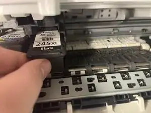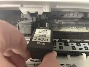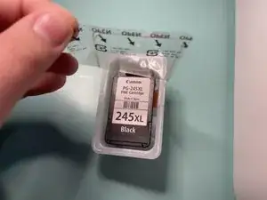 Цель этого руководства — показать, как заменить чернила в принтере Canon PIXMA TS3300. Отсек для картриджей находится в передней части принтера под крупным логотипом Canon. Элементы управления принтером, кнопка питания и индикаторы, расположены сверху. Для замены картриджей вам потребуются оригинальные картриджи Canon. Модель 245 — для черных чернил, 246 — для цветных.