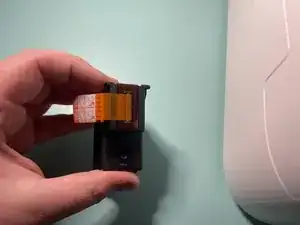 Снимите оранжевую наклейку с левой стороны картриджа.