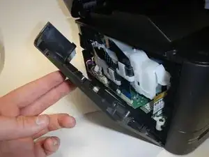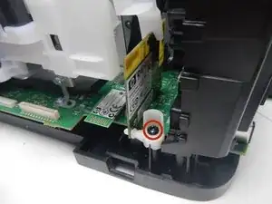 Открыв принтер, открутив несколько винтов, можно извлечь карту беспроводной связи из разъёма и заменить её.