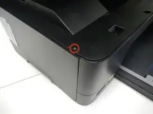 Используя биту Torx Security T9, открутите 12-миллиметровый винт, расположенный с крайней левой стороны сверху принтера.