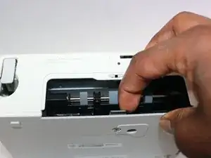 Вытяните кассету с бумагой из принтера. Она направляется двумя штифтами, которые входят в пазы на нижней стороне кассеты.