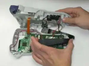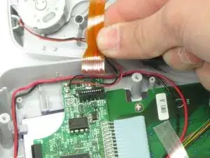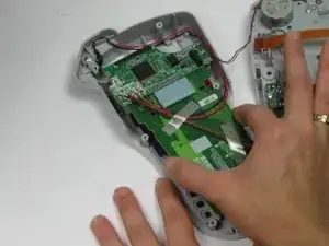 Осторожно снимите зелёную плату, вытаскивая её прямо вверх. Будьте осторожны, чтобы не повредить шлейф LCD, соединяющий плату с устройством.