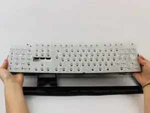 Клавиатура теперь должна свободно двигаться, поднимите всю мембрану клавиатуры и найдите клавишу, которую нужно заменить. Чтобы вспомнить, какая клавиша нуждается в замене, поставьте небольшую метку на задней стороне клавиши.