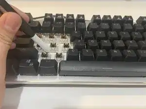 Пользуясь кисточкой, удалите любые загрязнения, чтобы не было проблем с контактами клавиш.