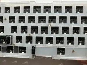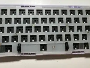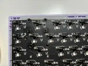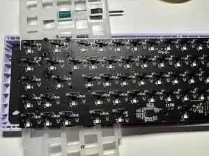 Следите за шумопоглощающими поролоновыми наклейками, прикрученными между платой и переключателями клавиатуры.