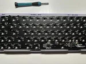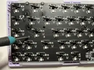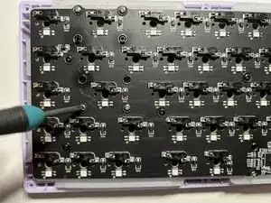 Используйте отвёртку, чтобы открутить восемь винтов на задней панели клавиатуры.