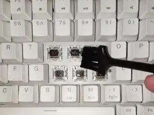 Очистите область вокруг клавиши с помощью мягкой кисточки или сжатого воздуха после снятия колпачка.