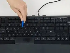 Осторожно подденьте поврежденную клавишу пластиковым инструментом под углом вверх.