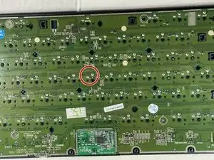 Открутите все винты Phillips #00 диаметром 2 мм на задней стороне клавиатуры, обведенные на предоставленной фотографии.