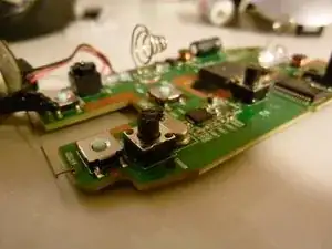 Удалите колесо мыши из сборки, затем извлеките печатную плату.